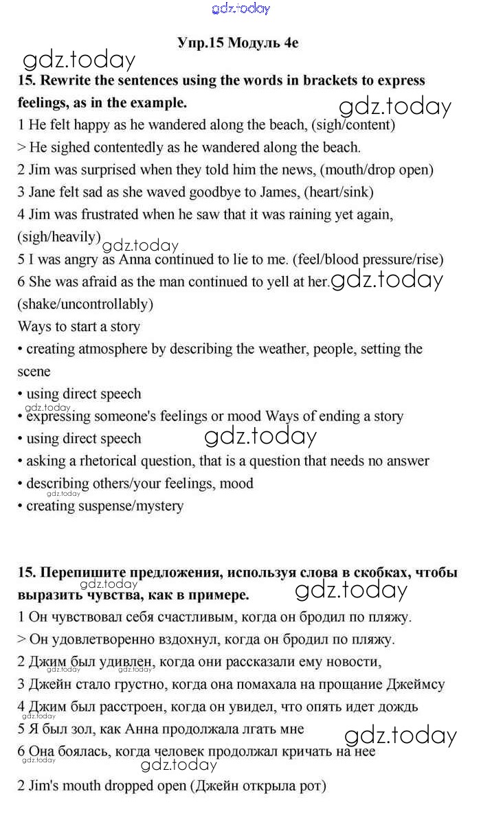 На страницах сайта gdz.today вы найдете учебный и вспомогательный материал, направленный на улучшения знаний школьной программы. ГДЗ - онлайн мир знаний 4e Решение. Module 4. Danger! 15 Учебнику по Английскому языку для 11 класса Эванс, Дули Просвещение Spotlight 2015