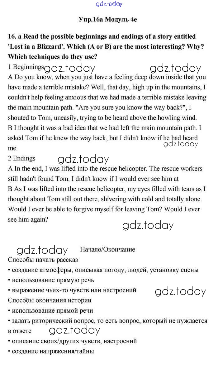 На страницах сайта gdz.today вы найдете учебный и вспомогательный материал, направленный на улучшения знаний школьной программы. ГДЗ - онлайн мир знаний 4e Решение. Module 4. Danger! 16 Учебнику по Английскому языку для 11 класса Эванс, Дули Просвещение Spotlight 2015
