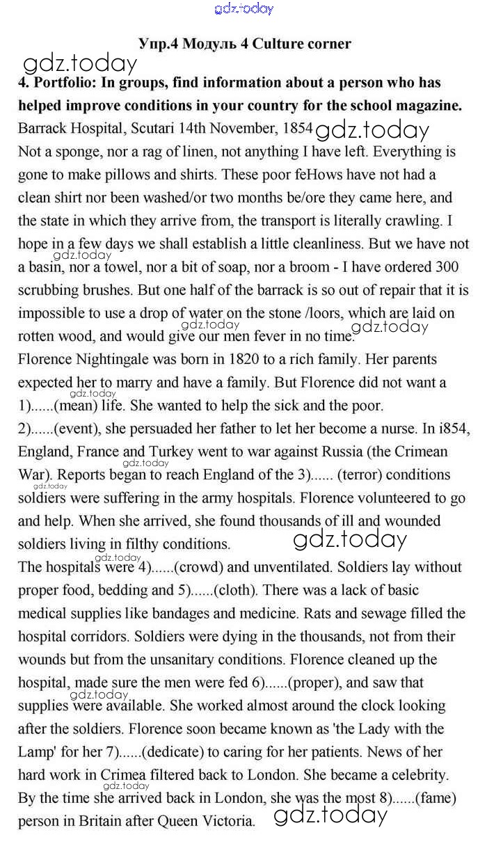 На страницах сайта gdz.today вы найдете учебный и вспомогательный материал, направленный на улучшения знаний школьной программы. ГДЗ - онлайн мир знаний Culture corner 4 Решение. Module 4. Danger! 4 Учебнику по Английскому языку для 11 класса Эванс, Дули Просвещение Spotlight 2015