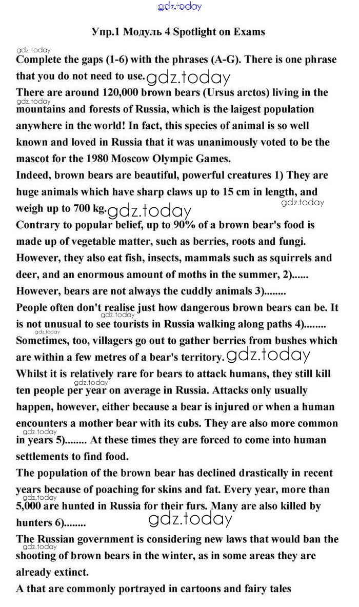 На страницах сайта gdz.today вы найдете учебный и вспомогательный материал, направленный на улучшения знаний школьной программы. ГДЗ - онлайн мир знаний Spotlight on exams Решение. Module 4. Danger! Reading Учебнику по Английскому языку для 11 класса Эванс, Дули Просвещение Spotlight 2015