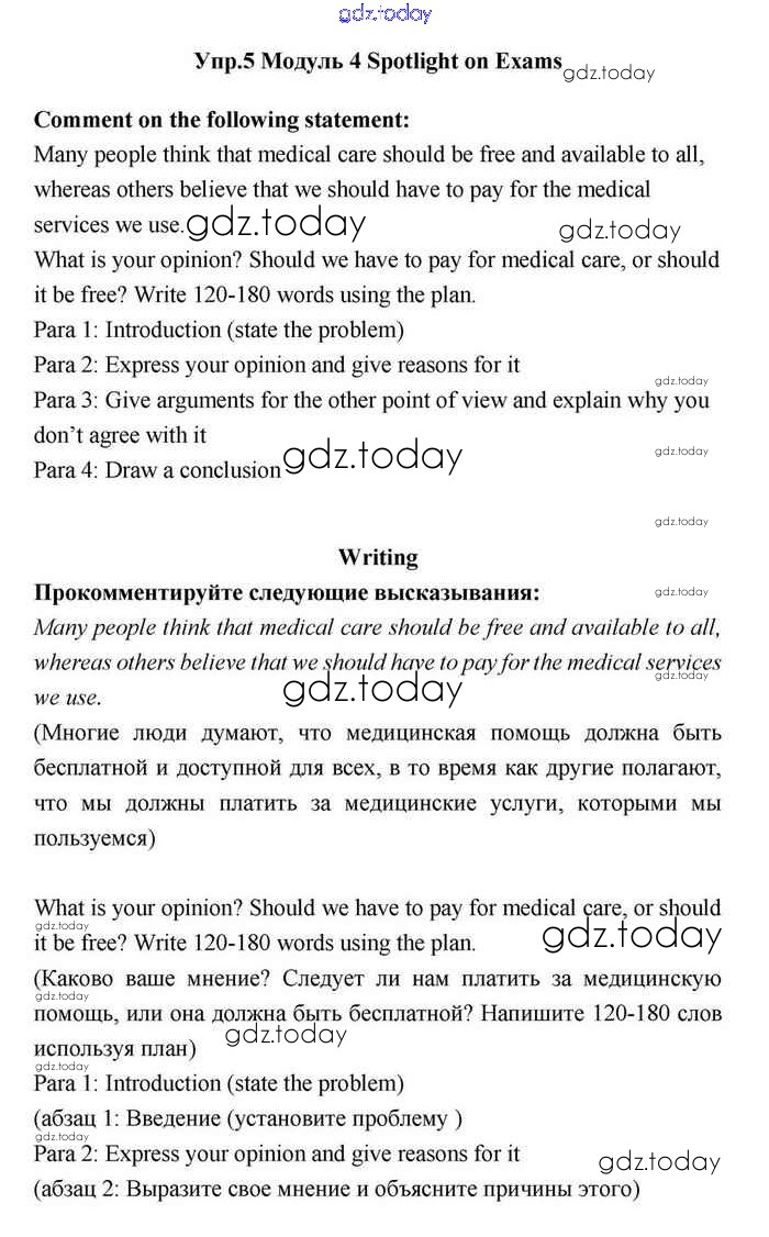 На страницах сайта gdz.today вы найдете учебный и вспомогательный материал, направленный на улучшения знаний школьной программы. ГДЗ - онлайн мир знаний Spotlight on exams Решение. Module 4. Danger! Writing Учебнику по Английскому языку для 11 класса Эванс, Дули Просвещение Spotlight 2015