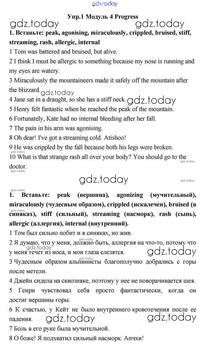 На страницах сайта gdz.today вы найдете учебный и вспомогательный материал, направленный на улучшения знаний школьной программы. ГДЗ - онлайн мир знаний Progress check 4 Решение. Module 4. Danger! 1 Учебнику по Английскому языку для 11 класса Эванс, Дули Просвещение Spotlight 2015