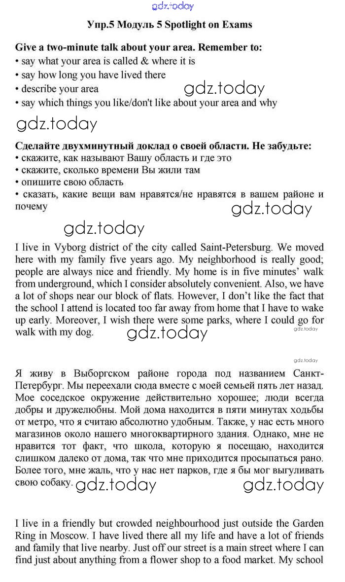 На страницах сайта gdz.today вы найдете учебный и вспомогательный материал, направленный на улучшения знаний школьной программы. ГДЗ - онлайн мир знаний Spotlight on exams Решение. Module 5. Who are you? Speaking Учебнику по Английскому языку для 11 класса Эванс, Дули Просвещение Spotlight 2015