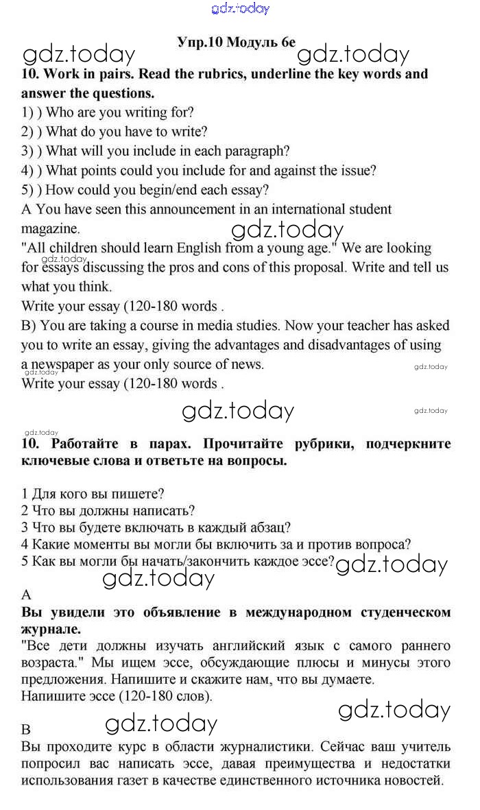 На страницах сайта gdz.today вы найдете учебный и вспомогательный материал, направленный на улучшения знаний школьной программы. ГДЗ - онлайн мир знаний 6e Решение. Module 6. Communication 10 Учебнику по Английскому языку для 11 класса Эванс, Дули Просвещение Spotlight 2015