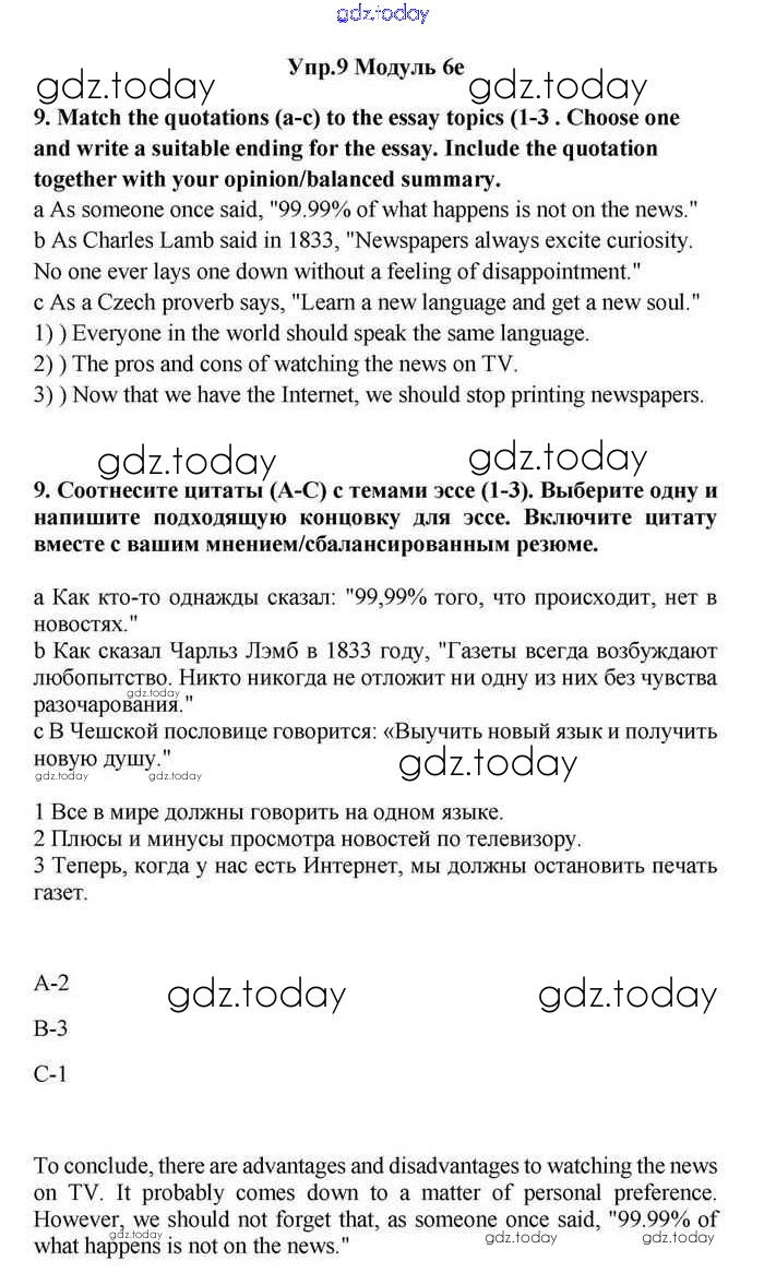На страницах сайта gdz.today вы найдете учебный и вспомогательный материал, направленный на улучшения знаний школьной программы. ГДЗ - онлайн мир знаний 6e Решение. Module 6. Communication 9 Учебнику по Английскому языку для 11 класса Эванс, Дули Просвещение Spotlight 2015