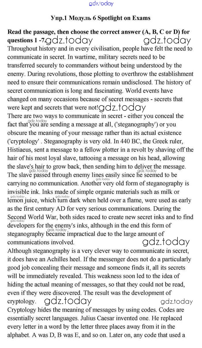 На страницах сайта gdz.today вы найдете учебный и вспомогательный материал, направленный на улучшения знаний школьной программы. ГДЗ - онлайн мир знаний Spotlight on exams Решение. Module 6. Communication Reading Учебнику по Английскому языку для 11 класса Эванс, Дули Просвещение Spotlight 2015