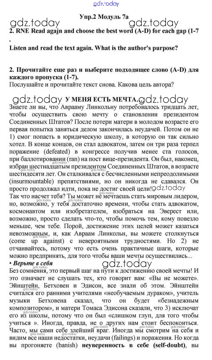 На страницах сайта gdz.today вы найдете учебный и вспомогательный материал, направленный на улучшения знаний школьной программы. ГДЗ - онлайн мир знаний 7a Решение. Module 7. In days to come 2 Учебнику по Английскому языку для 11 класса Эванс, Дули Просвещение Spotlight 2015