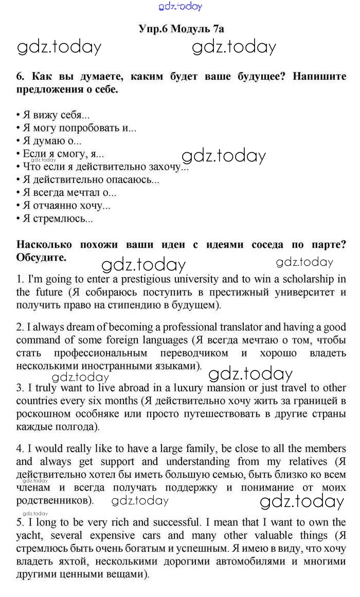 На страницах сайта gdz.today вы найдете учебный и вспомогательный материал, направленный на улучшения знаний школьной программы. ГДЗ - онлайн мир знаний 7a Решение. Module 7. In days to come 6 Учебнику по Английскому языку для 11 класса Эванс, Дули Просвещение Spotlight 2015