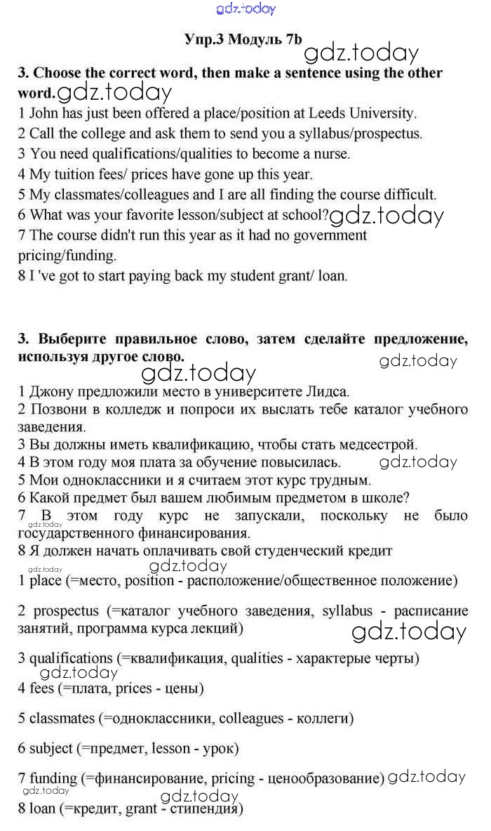 На страницах сайта gdz.today вы найдете учебный и вспомогательный материал, направленный на улучшения знаний школьной программы. ГДЗ - онлайн мир знаний 7b Решение. Module 7. In days to come 3 Учебнику по Английскому языку для 11 класса Эванс, Дули Просвещение Spotlight 2015