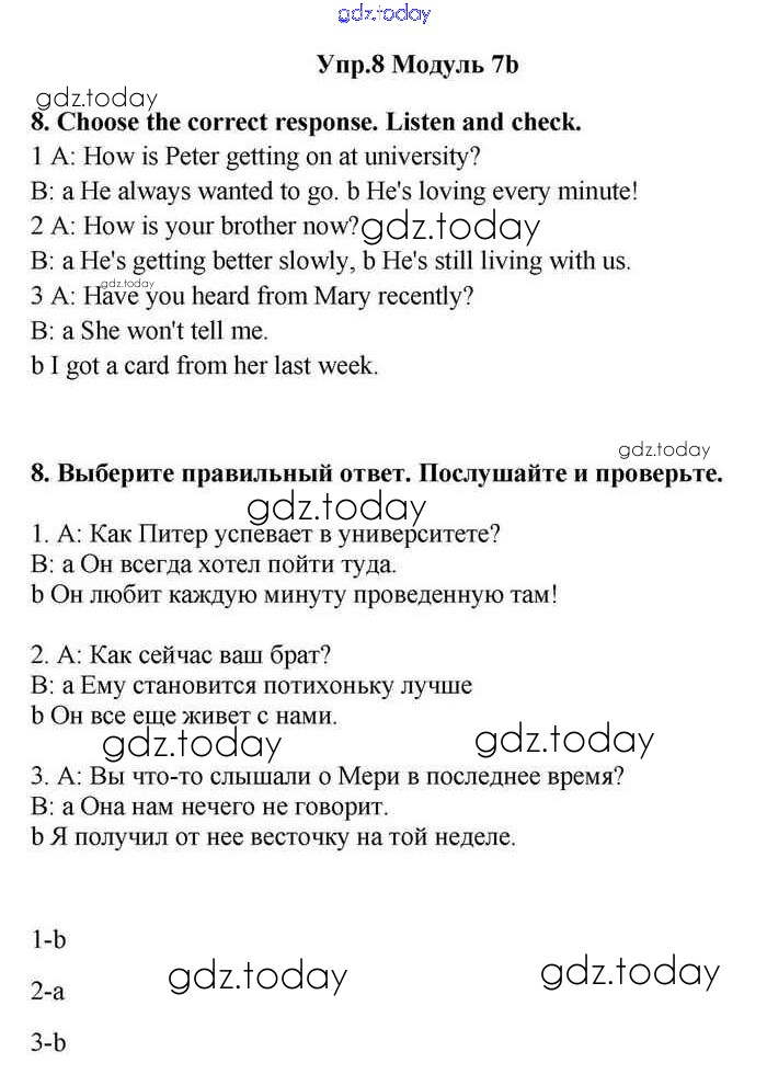 На страницах сайта gdz.today вы найдете учебный и вспомогательный материал, направленный на улучшения знаний школьной программы. ГДЗ - онлайн мир знаний 7b Решение. Module 7. In days to come 8 Учебнику по Английскому языку для 11 класса Эванс, Дули Просвещение Spotlight 2015