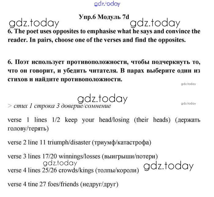 На страницах сайта gdz.today вы найдете учебный и вспомогательный материал, направленный на улучшения знаний школьной программы. ГДЗ - онлайн мир знаний 7d Решение. Module 7. In days to come 6 Учебнику по Английскому языку для 11 класса Эванс, Дули Просвещение Spotlight 2015
