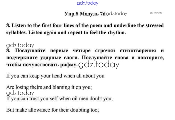 На страницах сайта gdz.today вы найдете учебный и вспомогательный материал, направленный на улучшения знаний школьной программы. ГДЗ - онлайн мир знаний 7d Решение. Module 7. In days to come 8 Учебнику по Английскому языку для 11 класса Эванс, Дули Просвещение Spotlight 2015
