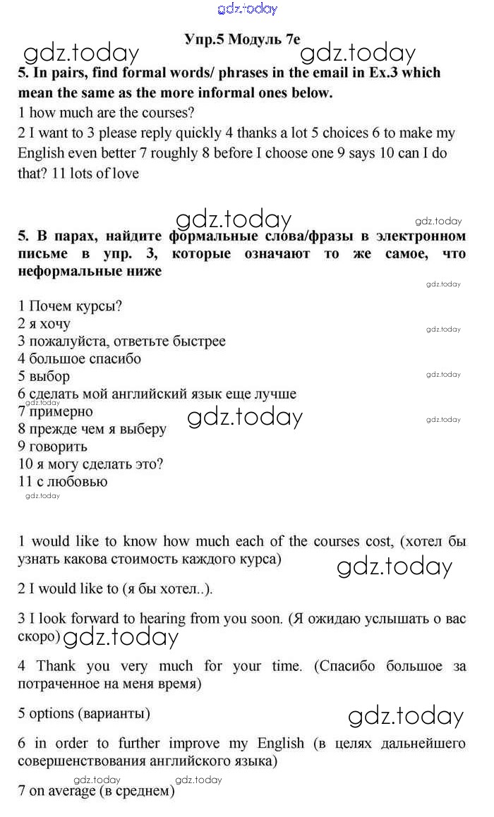На страницах сайта gdz.today вы найдете учебный и вспомогательный материал, направленный на улучшения знаний школьной программы. ГДЗ - онлайн мир знаний 7e Решение. Module 7. In days to come 5 Учебнику по Английскому языку для 11 класса Эванс, Дули Просвещение Spotlight 2015