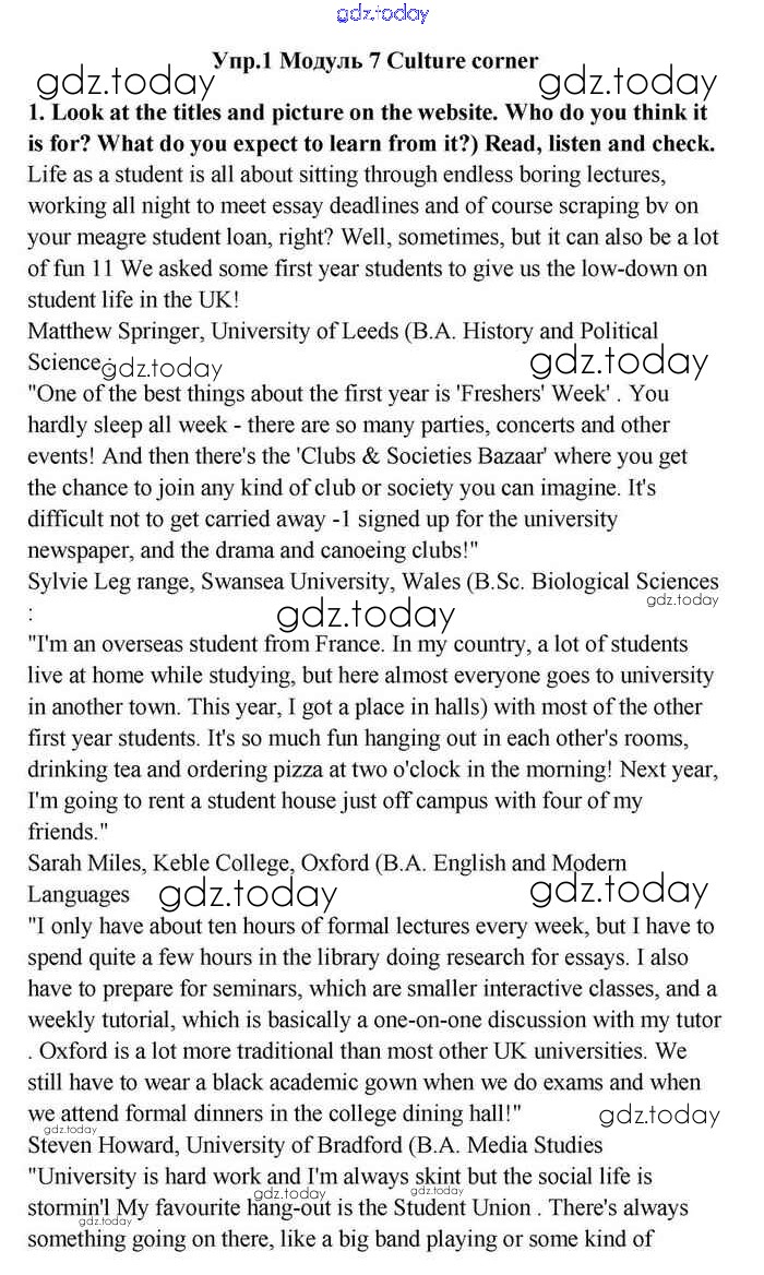 На страницах сайта gdz.today вы найдете учебный и вспомогательный материал, направленный на улучшения знаний школьной программы. ГДЗ - онлайн мир знаний Culture corner 7 Решение. Module 7. In days to come 1 Учебнику по Английскому языку для 11 класса Эванс, Дули Просвещение Spotlight 2015