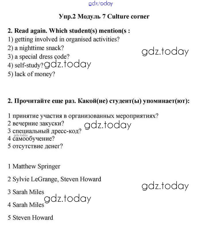 На страницах сайта gdz.today вы найдете учебный и вспомогательный материал, направленный на улучшения знаний школьной программы. ГДЗ - онлайн мир знаний Culture corner 7 Решение. Module 7. In days to come 2 Учебнику по Английскому языку для 11 класса Эванс, Дули Просвещение Spotlight 2015