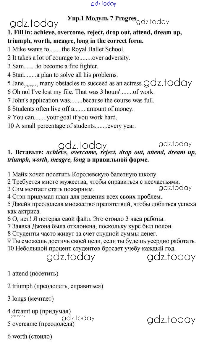 На страницах сайта gdz.today вы найдете учебный и вспомогательный материал, направленный на улучшения знаний школьной программы. ГДЗ - онлайн мир знаний Progress check 7 Решение. Module 7. In days to come 1 Учебнику по Английскому языку для 11 класса Эванс, Дули Просвещение Spotlight 2015
