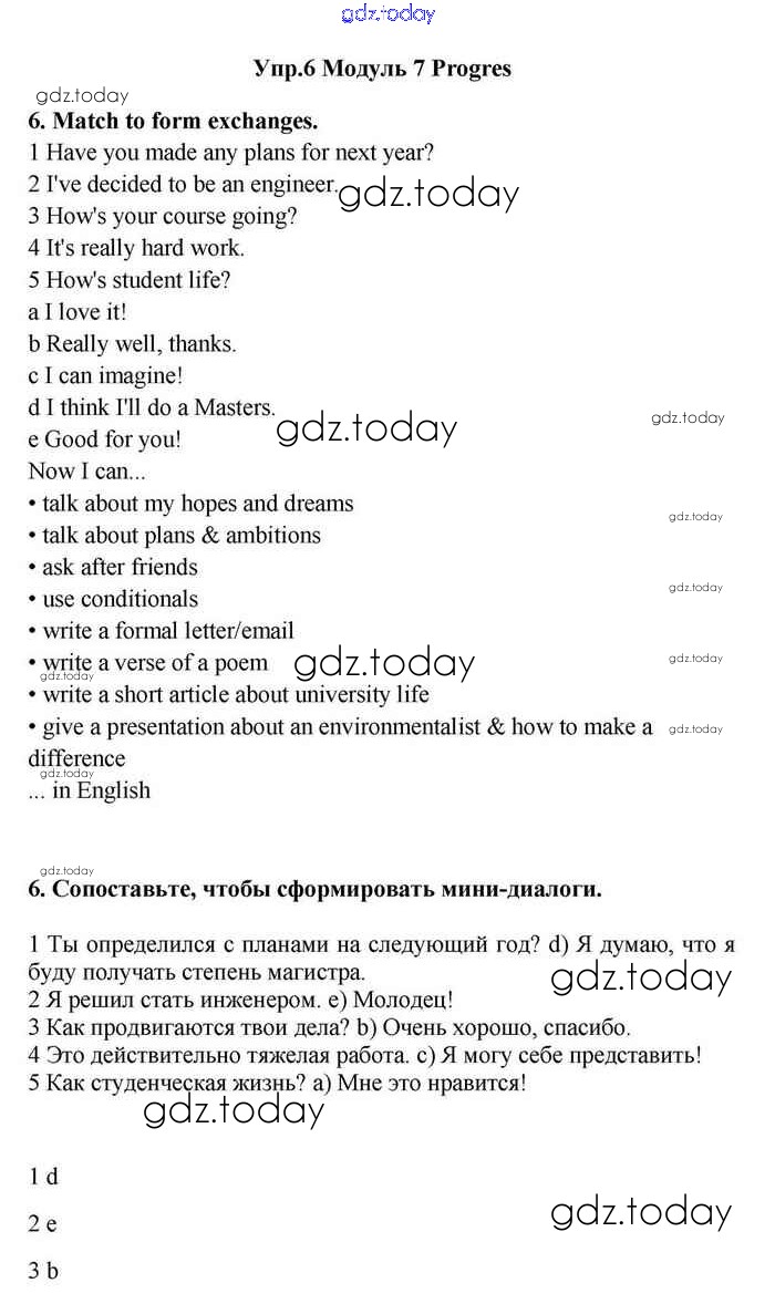 На страницах сайта gdz.today вы найдете учебный и вспомогательный материал, направленный на улучшения знаний школьной программы. ГДЗ - онлайн мир знаний Progress check 7 Решение. Module 7. In days to come 6 Учебнику по Английскому языку для 11 класса Эванс, Дули Просвещение Spotlight 2015