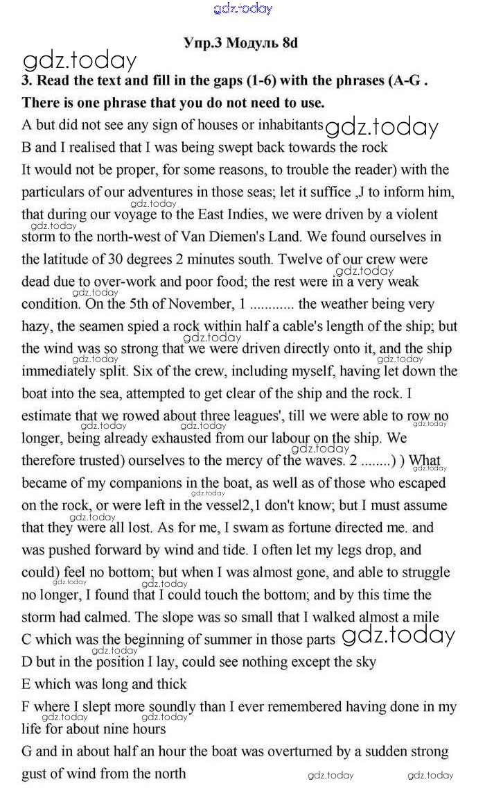 На страницах сайта gdz.today вы найдете учебный и вспомогательный материал, направленный на улучшения знаний школьной программы. ГДЗ - онлайн мир знаний 8d Решение. Module 8. Travel 3 Учебнику по Английскому языку для 11 класса Эванс, Дули Просвещение Spotlight 2015