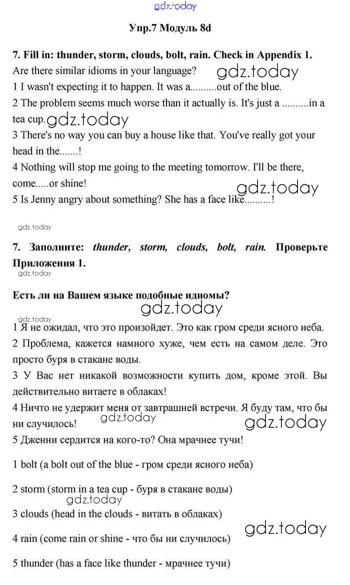 На страницах сайта gdz.today вы найдете учебный и вспомогательный материал, направленный на улучшения знаний школьной программы. ГДЗ - онлайн мир знаний 8d Решение. Module 8. Travel 7 Учебнику по Английскому языку для 11 класса Эванс, Дули Просвещение Spotlight 2015