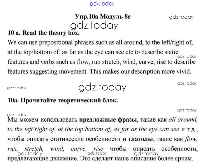 На страницах сайта gdz.today вы найдете учебный и вспомогательный материал, направленный на улучшения знаний школьной программы. ГДЗ - онлайн мир знаний 8e Решение. Module 8. Travel 10 Учебнику по Английскому языку для 11 класса Эванс, Дули Просвещение Spotlight 2015