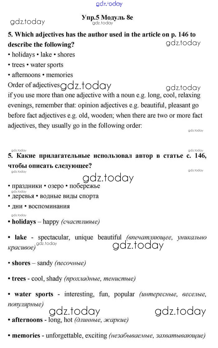 На страницах сайта gdz.today вы найдете учебный и вспомогательный материал, направленный на улучшения знаний школьной программы. ГДЗ - онлайн мир знаний 8e Решение. Module 8. Travel 5 Учебнику по Английскому языку для 11 класса Эванс, Дули Просвещение Spotlight 2015