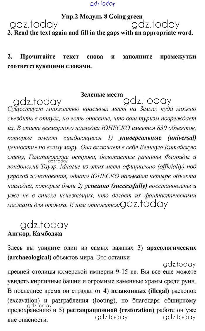 На страницах сайта gdz.today вы найдете учебный и вспомогательный материал, направленный на улучшения знаний школьной программы. ГДЗ - онлайн мир знаний Going green Решение. Module 8. Travel 2 Учебнику по Английскому языку для 11 класса Эванс, Дули Просвещение Spotlight 2015