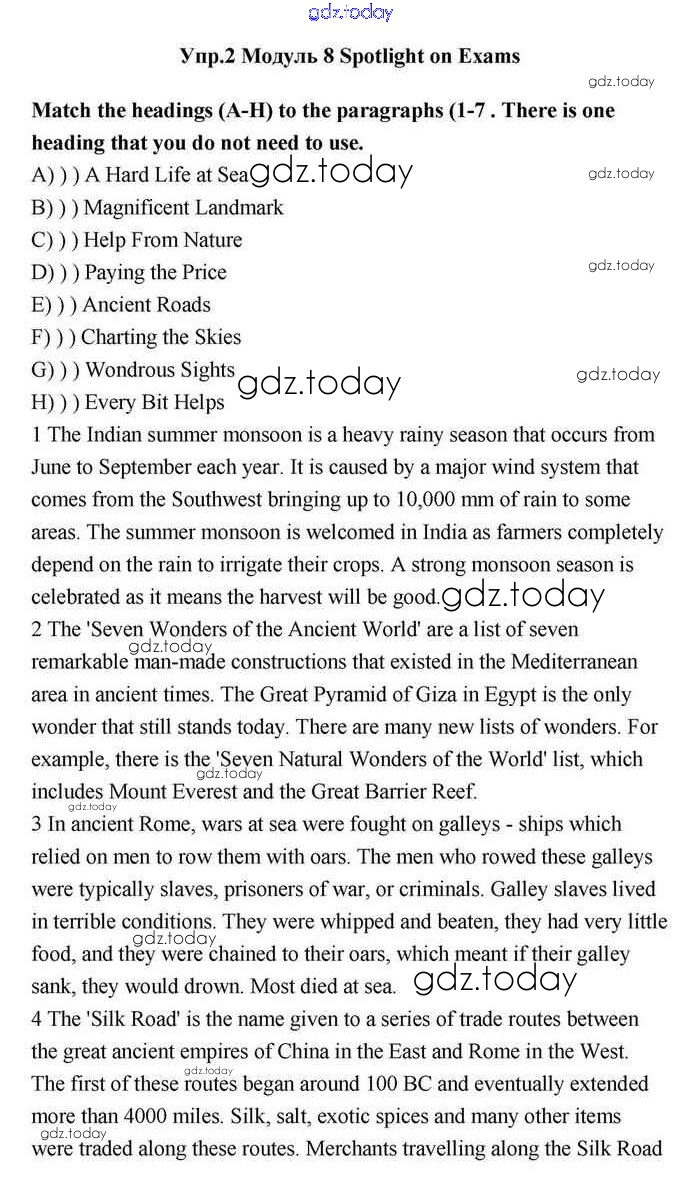 На страницах сайта gdz.today вы найдете учебный и вспомогательный материал, направленный на улучшения знаний школьной программы. ГДЗ - онлайн мир знаний Spotlight on exams Решение. Module 8. Travel Reading Учебнику по Английскому языку для 11 класса Эванс, Дули Просвещение Spotlight 2015