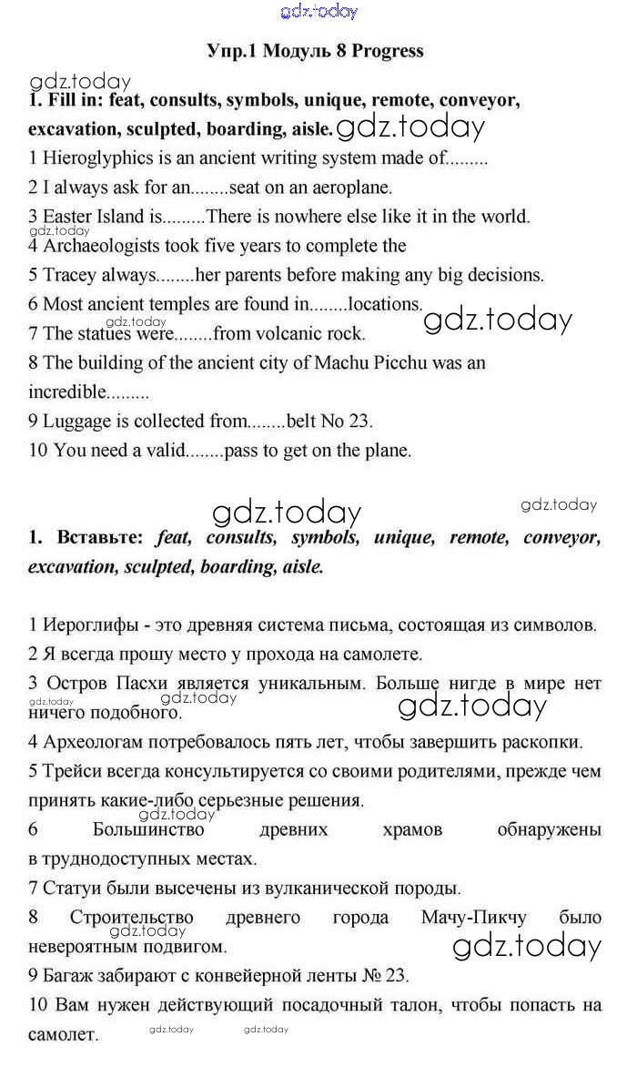 На страницах сайта gdz.today вы найдете учебный и вспомогательный материал, направленный на улучшения знаний школьной программы. ГДЗ - онлайн мир знаний Progress check 8 Решение. Module 8. Travel 1 Учебнику по Английскому языку для 11 класса Эванс, Дули Просвещение Spotlight 2015
