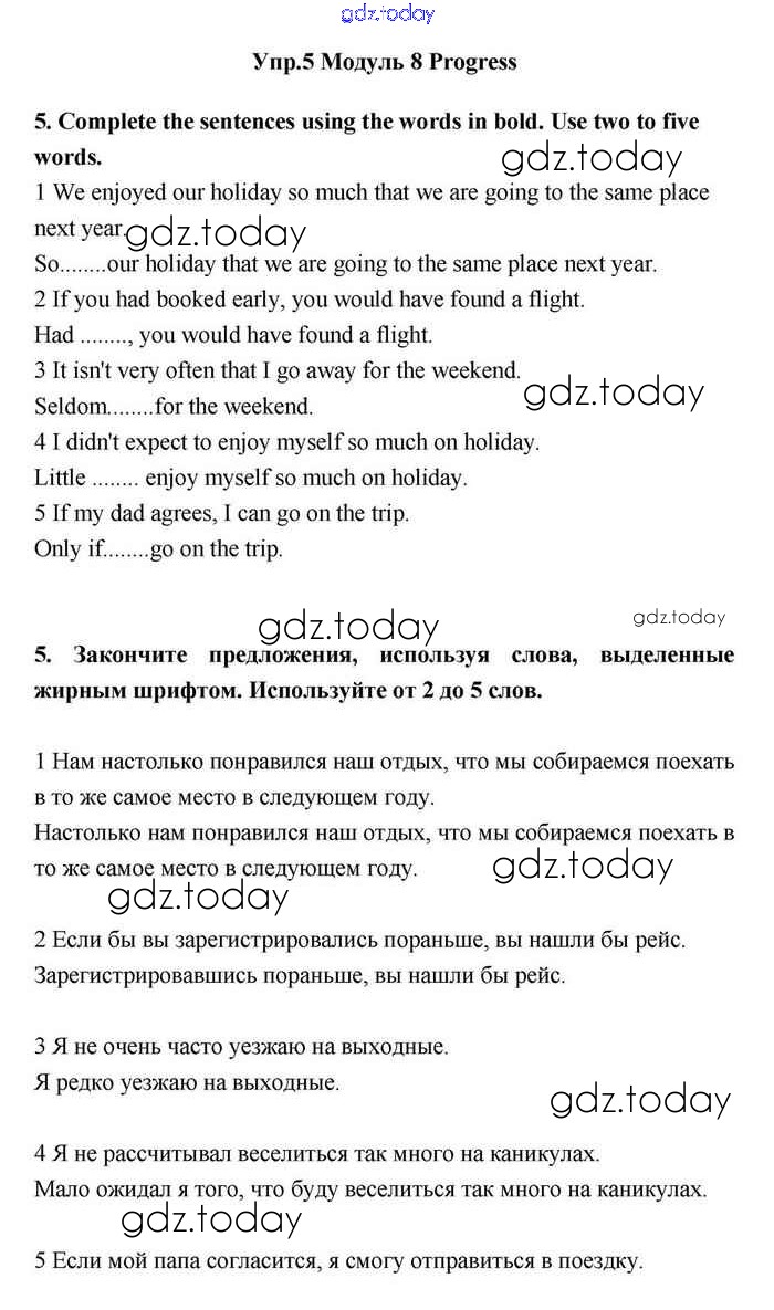 На страницах сайта gdz.today вы найдете учебный и вспомогательный материал, направленный на улучшения знаний школьной программы. ГДЗ - онлайн мир знаний Progress check 8 Решение. Module 8. Travel 5 Учебнику по Английскому языку для 11 класса Эванс, Дули Просвещение Spotlight 2015