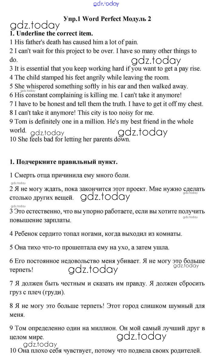 На страницах сайта gdz.today вы найдете учебный и вспомогательный материал, направленный на улучшения знаний школьной программы. ГДЗ - онлайн мир знаний Module 2 Решение. Word Perfect 1 Учебнику по Английскому языку для 11 класса Эванс, Дули Просвещение Spotlight 2015