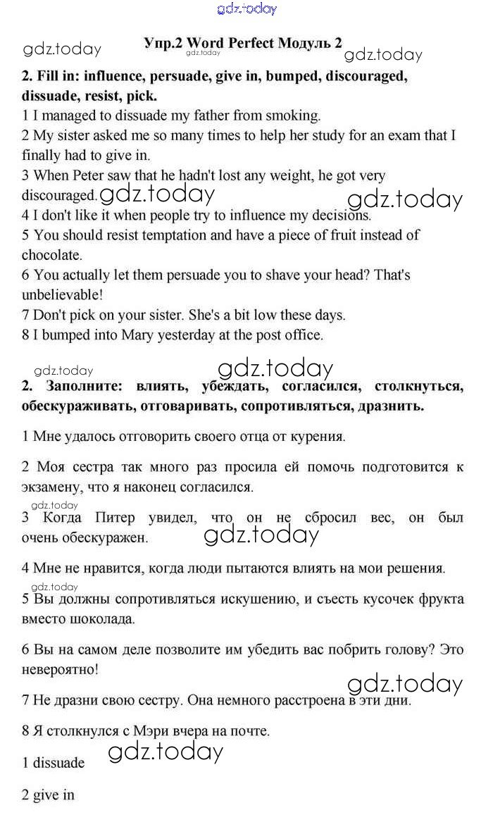На страницах сайта gdz.today вы найдете учебный и вспомогательный материал, направленный на улучшения знаний школьной программы. ГДЗ - онлайн мир знаний Module 2 Решение. Word Perfect 2 Учебнику по Английскому языку для 11 класса Эванс, Дули Просвещение Spotlight 2015
