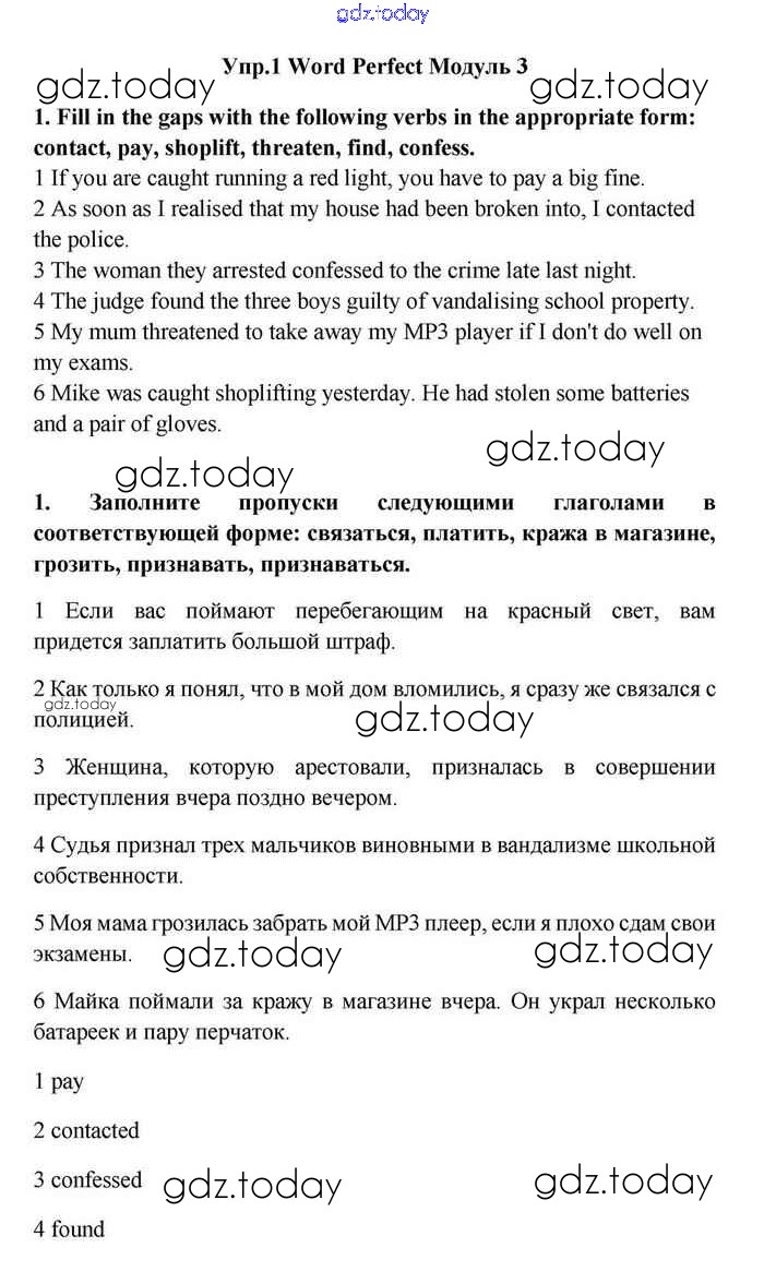 На страницах сайта gdz.today вы найдете учебный и вспомогательный материал, направленный на улучшения знаний школьной программы. ГДЗ - онлайн мир знаний Module 3 Решение. Word Perfect 1 Учебнику по Английскому языку для 11 класса Эванс, Дули Просвещение Spotlight 2015
