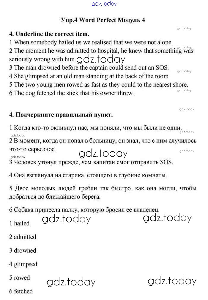 На страницах сайта gdz.today вы найдете учебный и вспомогательный материал, направленный на улучшения знаний школьной программы. ГДЗ - онлайн мир знаний Module 4 Решение. Word Perfect 4 Учебнику по Английскому языку для 11 класса Эванс, Дули Просвещение Spotlight 2015