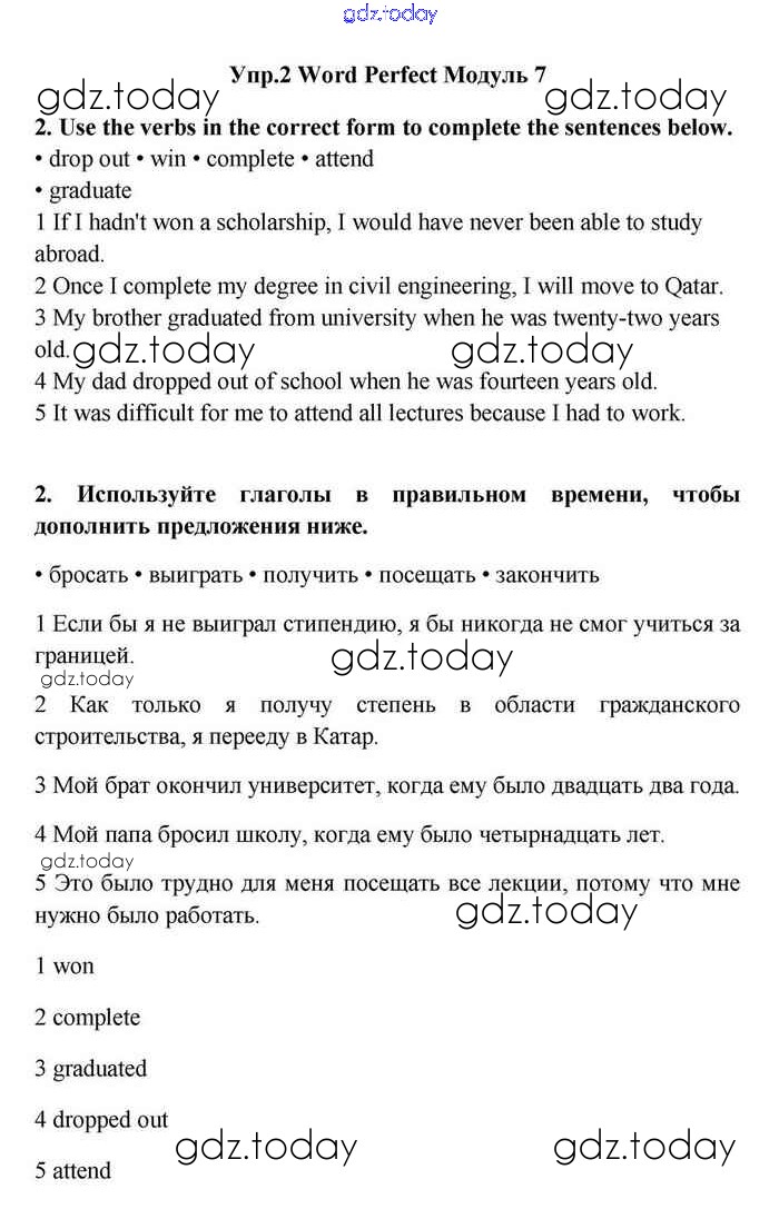 На страницах сайта gdz.today вы найдете учебный и вспомогательный материал, направленный на улучшения знаний школьной программы. ГДЗ - онлайн мир знаний Module 7 Решение. Word Perfect 2 Учебнику по Английскому языку для 11 класса Эванс, Дули Просвещение Spotlight 2015