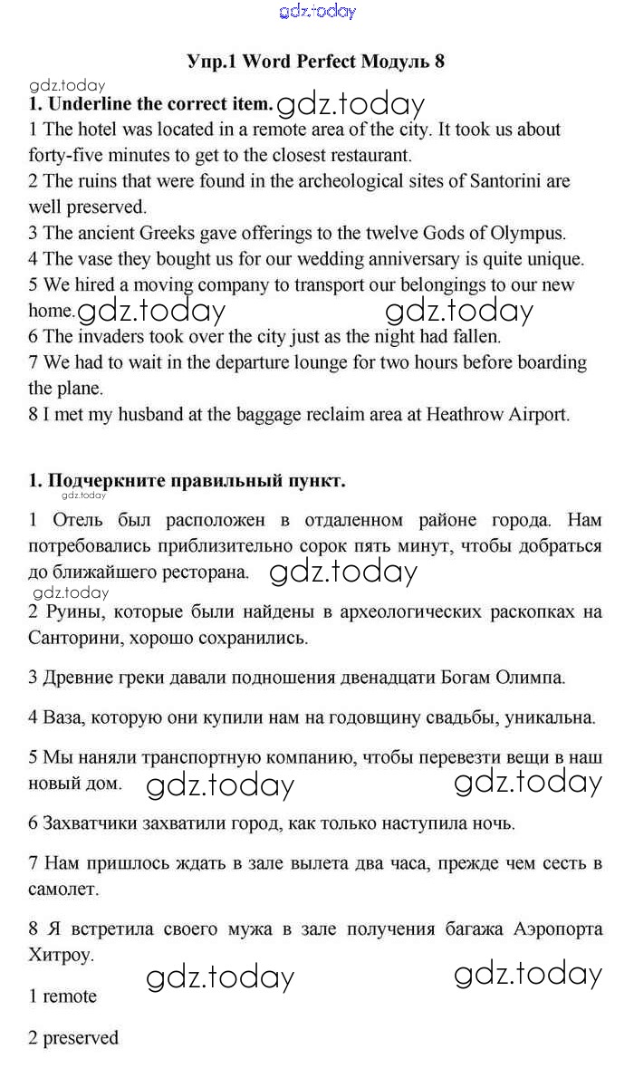 На страницах сайта gdz.today вы найдете учебный и вспомогательный материал, направленный на улучшения знаний школьной программы. ГДЗ - онлайн мир знаний Module 8 Решение. Word Perfect 1 Учебнику по Английскому языку для 11 класса Эванс, Дули Просвещение Spotlight 2015