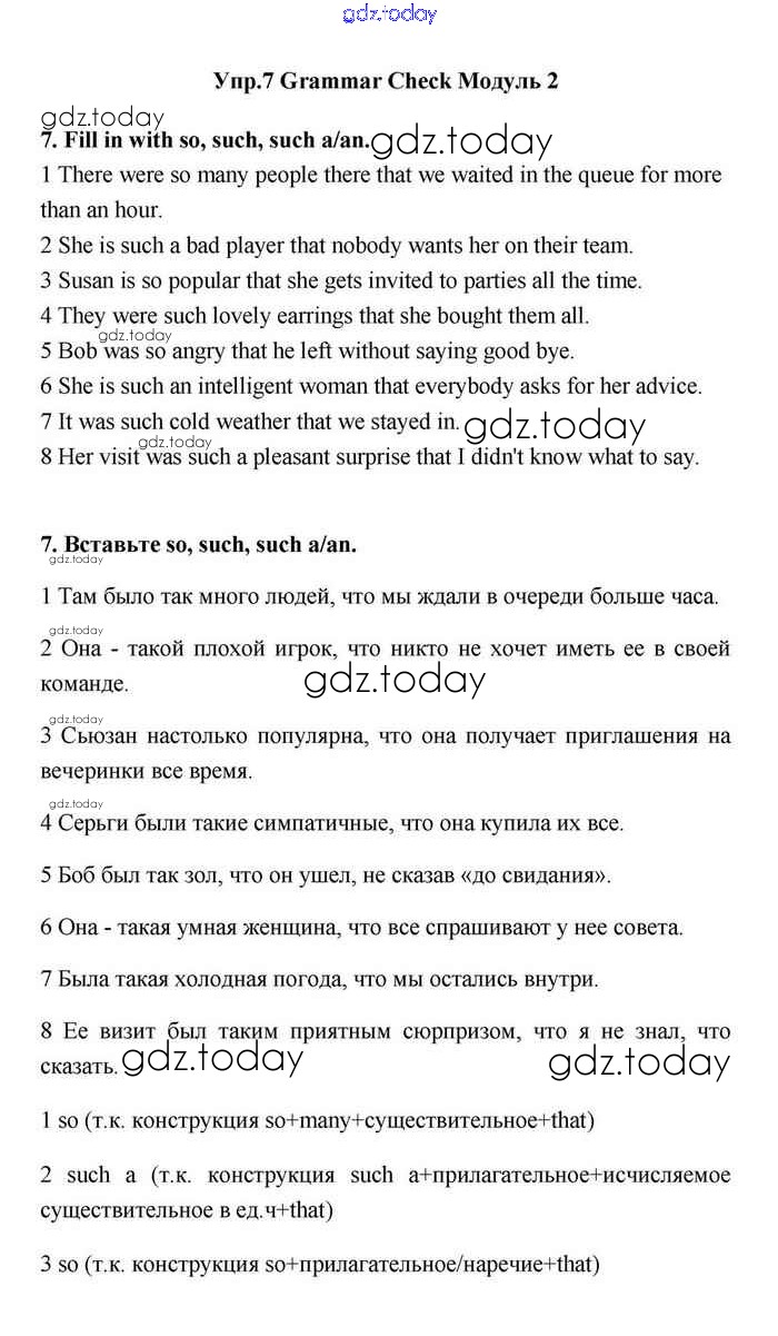 На страницах сайта gdz.today вы найдете учебный и вспомогательный материал, направленный на улучшения знаний школьной программы. ГДЗ - онлайн мир знаний Module 2 Решение. Grammar Check 7 Учебнику по Английскому языку для 11 класса Эванс, Дули Просвещение Spotlight 2015