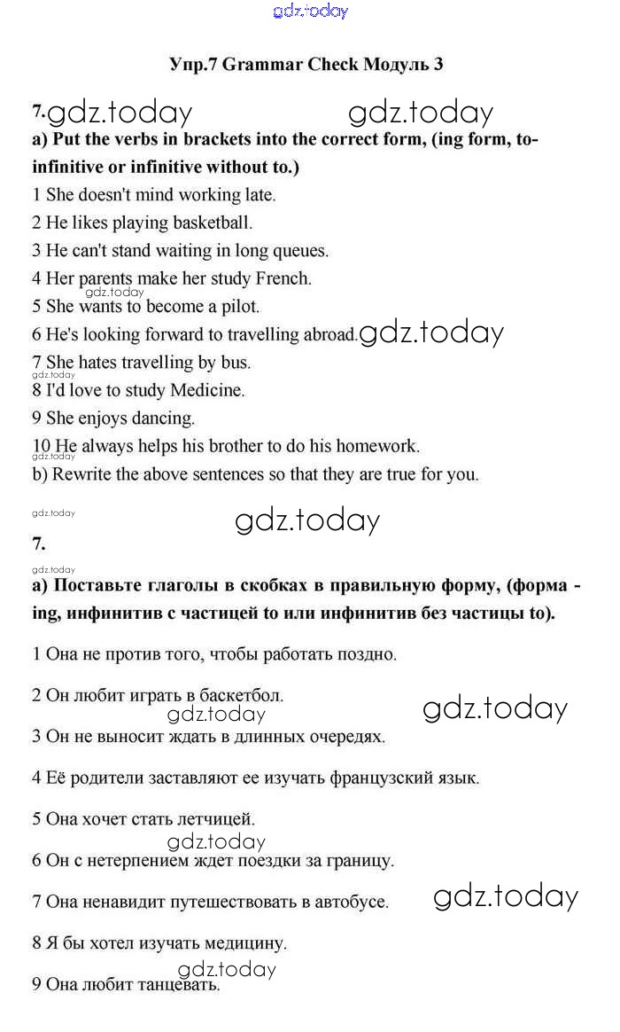 На страницах сайта gdz.today вы найдете учебный и вспомогательный материал, направленный на улучшения знаний школьной программы. ГДЗ - онлайн мир знаний Module 3 Решение. Grammar Check 7 Учебнику по Английскому языку для 11 класса Эванс, Дули Просвещение Spotlight 2015