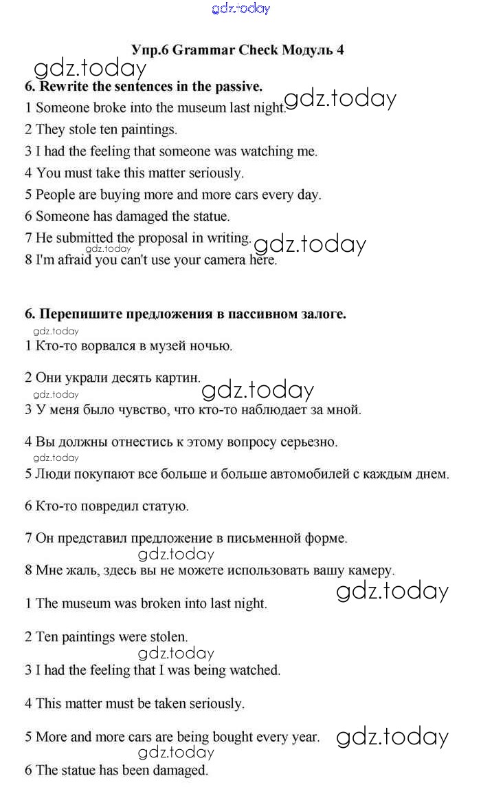 На страницах сайта gdz.today вы найдете учебный и вспомогательный материал, направленный на улучшения знаний школьной программы. ГДЗ - онлайн мир знаний Module 4 Решение. Grammar Check 6 Учебнику по Английскому языку для 11 класса Эванс, Дули Просвещение Spotlight 2015