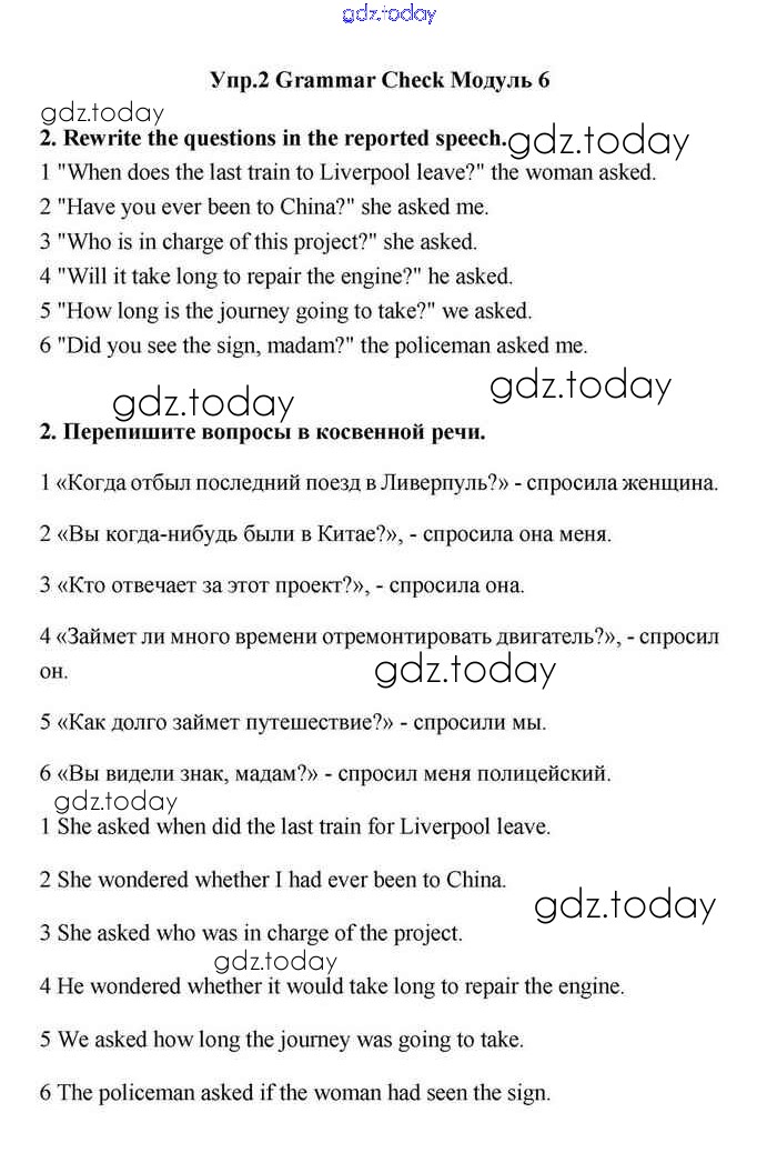 На страницах сайта gdz.today вы найдете учебный и вспомогательный материал, направленный на улучшения знаний школьной программы. ГДЗ - онлайн мир знаний Module 6 Решение. Grammar Check 2 Учебнику по Английскому языку для 11 класса Эванс, Дули Просвещение Spotlight 2015