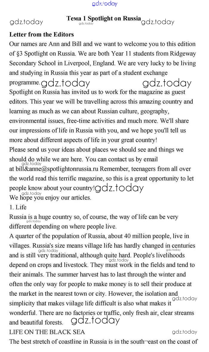 На страницах сайта gdz.today вы найдете учебный и вспомогательный материал, направленный на улучшения знаний школьной программы. ГДЗ - онлайн мир знаний Решение. Spotlight on Russia стр. 3 Учебнику по Английскому языку для 11 класса Эванс, Дули Просвещение Spotlight 2015