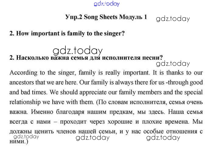 На страницах сайта gdz.today вы найдете учебный и вспомогательный материал, направленный на улучшения знаний школьной программы. ГДЗ - онлайн мир знаний Module 1 Решение. Song sheets 2 Учебнику по Английскому языку для 11 класса Эванс, Дули Просвещение Spotlight 2015