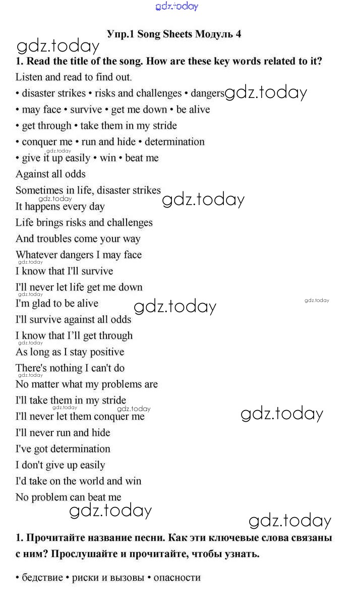 На страницах сайта gdz.today вы найдете учебный и вспомогательный материал, направленный на улучшения знаний школьной программы. ГДЗ - онлайн мир знаний Module 4 Решение. Song sheets 1 Учебнику по Английскому языку для 11 класса Эванс, Дули Просвещение Spotlight 2015