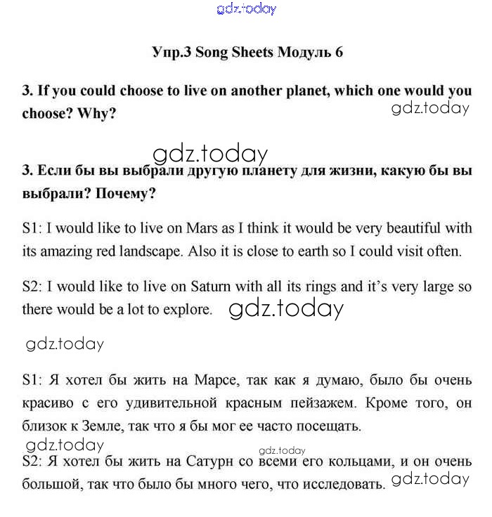 На страницах сайта gdz.today вы найдете учебный и вспомогательный материал, направленный на улучшения знаний школьной программы. ГДЗ - онлайн мир знаний Module 6 Решение. Song sheets 3 Учебнику по Английскому языку для 11 класса Эванс, Дули Просвещение Spotlight 2015