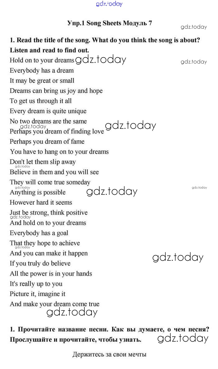 На страницах сайта gdz.today вы найдете учебный и вспомогательный материал, направленный на улучшения знаний школьной программы. ГДЗ - онлайн мир знаний Module 7 Решение. Song sheets 1 Учебнику по Английскому языку для 11 класса Эванс, Дули Просвещение Spotlight 2015
