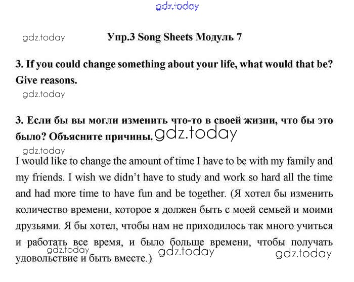 На страницах сайта gdz.today вы найдете учебный и вспомогательный материал, направленный на улучшения знаний школьной программы. ГДЗ - онлайн мир знаний Module 7 Решение. Song sheets 3 Учебнику по Английскому языку для 11 класса Эванс, Дули Просвещение Spotlight 2015