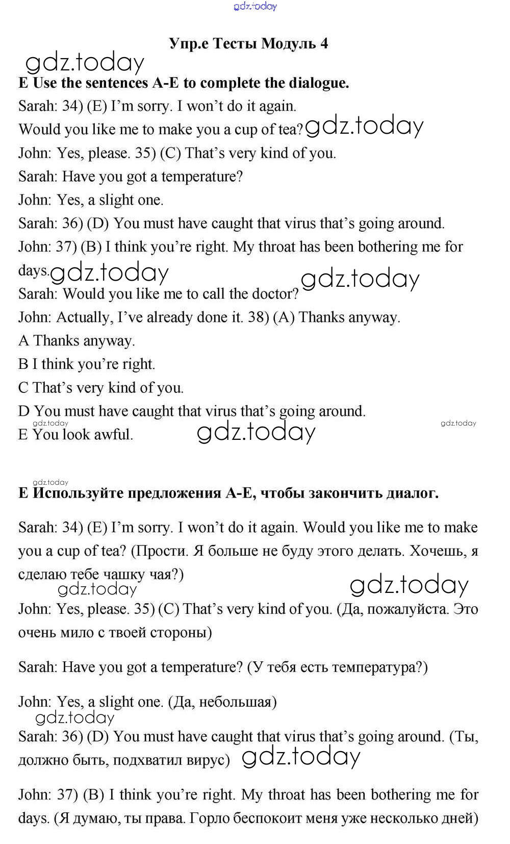 На страницах сайта gdz.today вы найдете учебный и вспомогательный материал, направленный на улучшения знаний школьной программы. ГДЗ - онлайн мир знаний Тесты Решение к Module 4 E Учебнику по Английскому языку для 11 класса Эванс, Дули  Просвещение Spotlight 2015