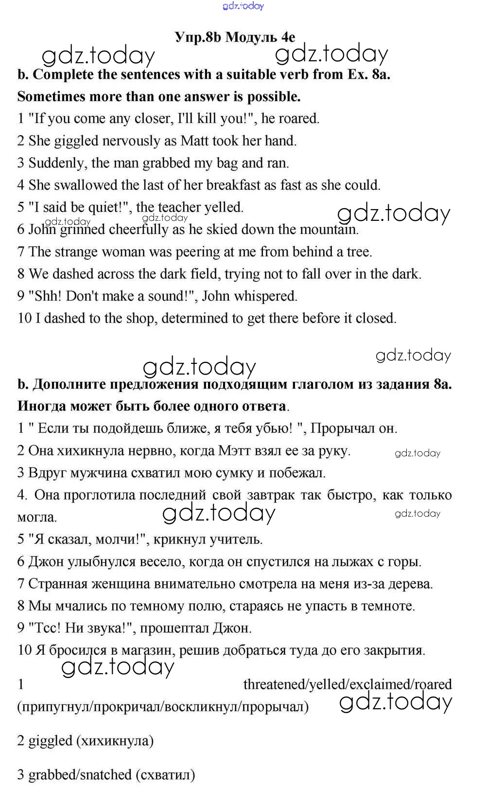 На страницах сайта gdz.today вы найдете учебный и вспомогательный материал, направленный на улучшения знаний школьной программы. ГДЗ - онлайн мир знаний Часть 4e Решение к Module 4 8b Учебнику по Английскому языку для 11 класса Эванс, Дули Просвещение Spotlight 2015