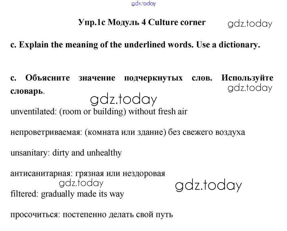 На страницах сайта gdz.today вы найдете учебный и вспомогательный материал, направленный на улучшения знаний школьной программы. ГДЗ - онлайн мир знаний Culture corner Решение к Module 4 1c Учебнику по Английскому языку для 11 класса Эванс, Дули Просвещение Spotlight 2015