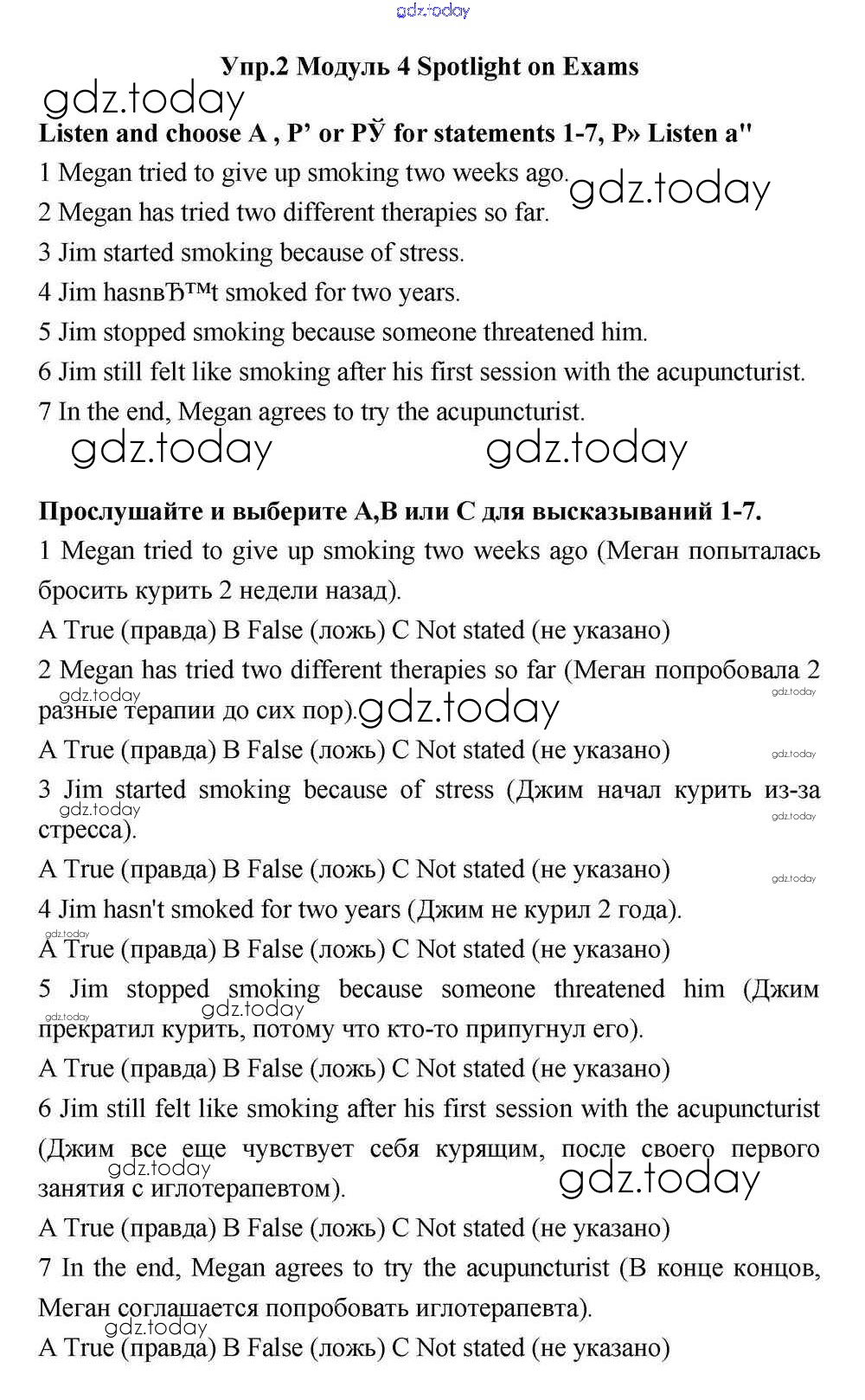 Ответы к Spotlight on Exams Решение к Module 4 2 Учебнику по Английскому языку для 11 класса Эванс, Дули Просвещение Spotlight 2015