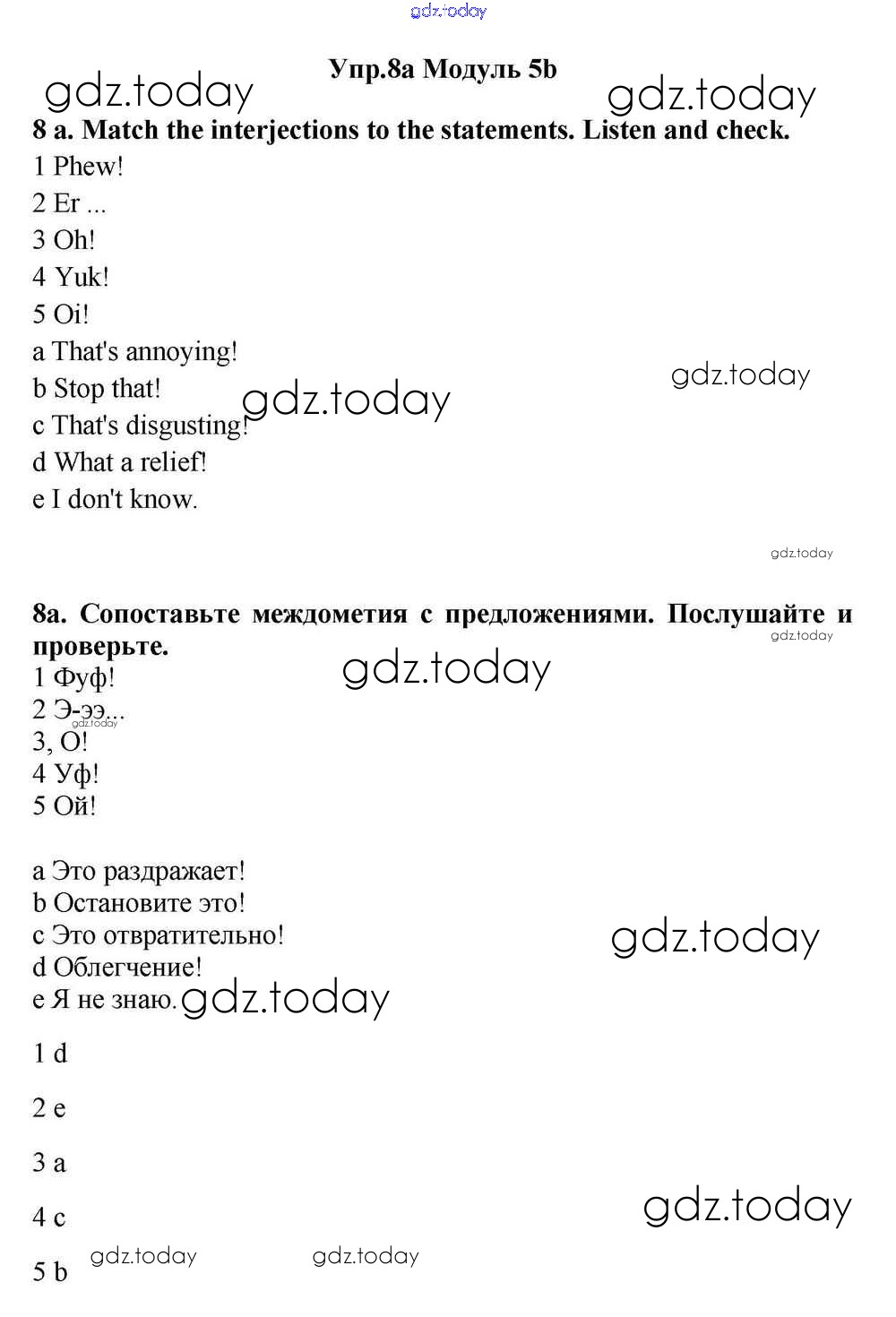 На страницах сайта gdz.today вы найдете учебный и вспомогательный материал, направленный на улучшения знаний школьной программы. ГДЗ - онлайн мир знаний Часть 5b Решение к Module 5 8a Учебнику по Английскому языку для 11 класса Эванс, Дули  Просвещение Spotlight 2015